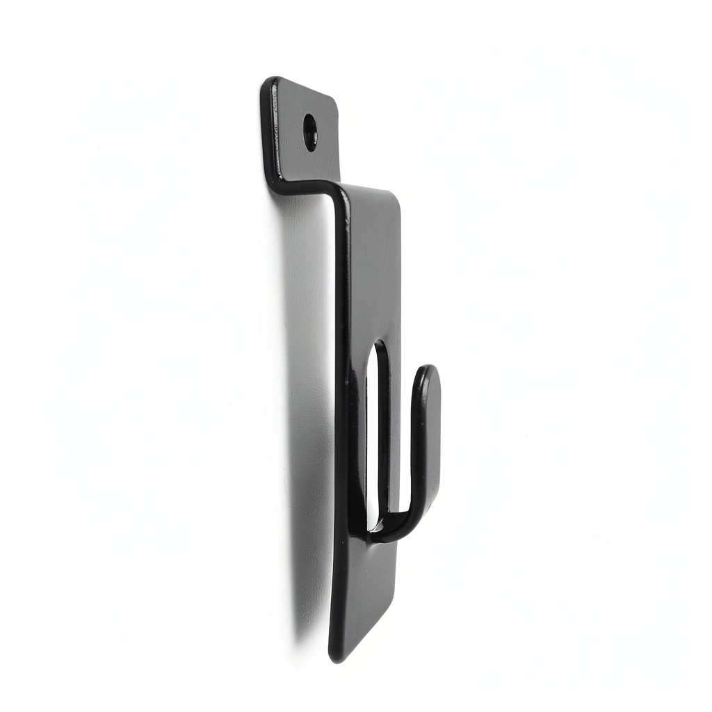 These hooks are designed for slatwall or slatgrid panels and are recommended for wood surfaces, ensuring secure mounting without additional tools.